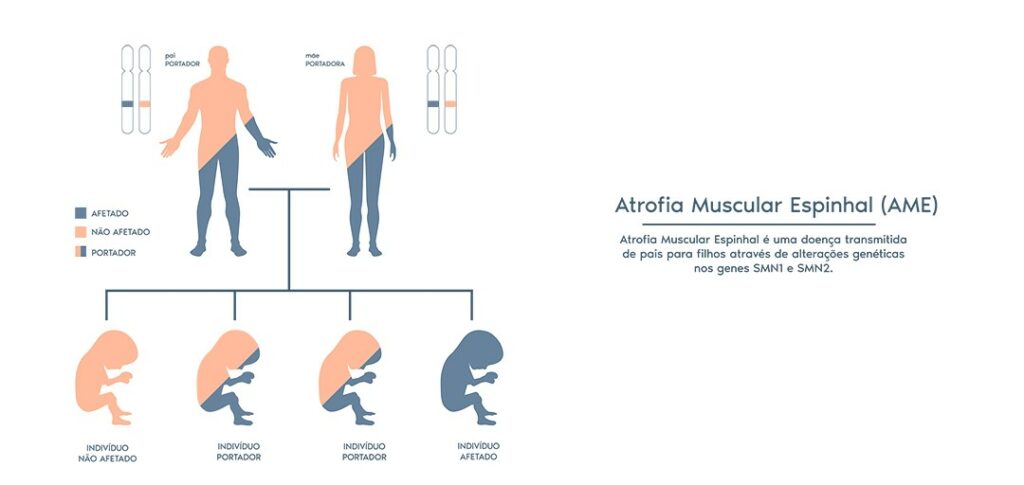 Por ser una condición autosómica recesiva, la AME solo se manifiesta cuando el niño hereda dos copias alteradas del gen —una de cada progenitor—. Así, padres portadores asintomáticos pueden tener hijos con la enfermedad sin presentar ningún síntoma.