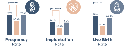 ERA es una solución eficaz para pacientes con fallos repetidos de implantación (RIF), respaldado por el mayor número de publicaciones científicas y las tasas de éxito clínico más altas en comparación con cualquier otro test de receptividad endometrial en el mercado. De hecho, ERA es el único test de su clase respaldado por un ensayo clínico aleatorizado (RCT)*. Este estudio, que incluyó a 320 pacientes con RIF, demostró una mejora significativa en los resultados reproductivos —incluyendo casi el doble de tasas de nacimientos vivos— en pacientes que utilizaron ERA en combinación con PGT-A, en comparación con aquellas que utilizaron únicamente el PGT-A.